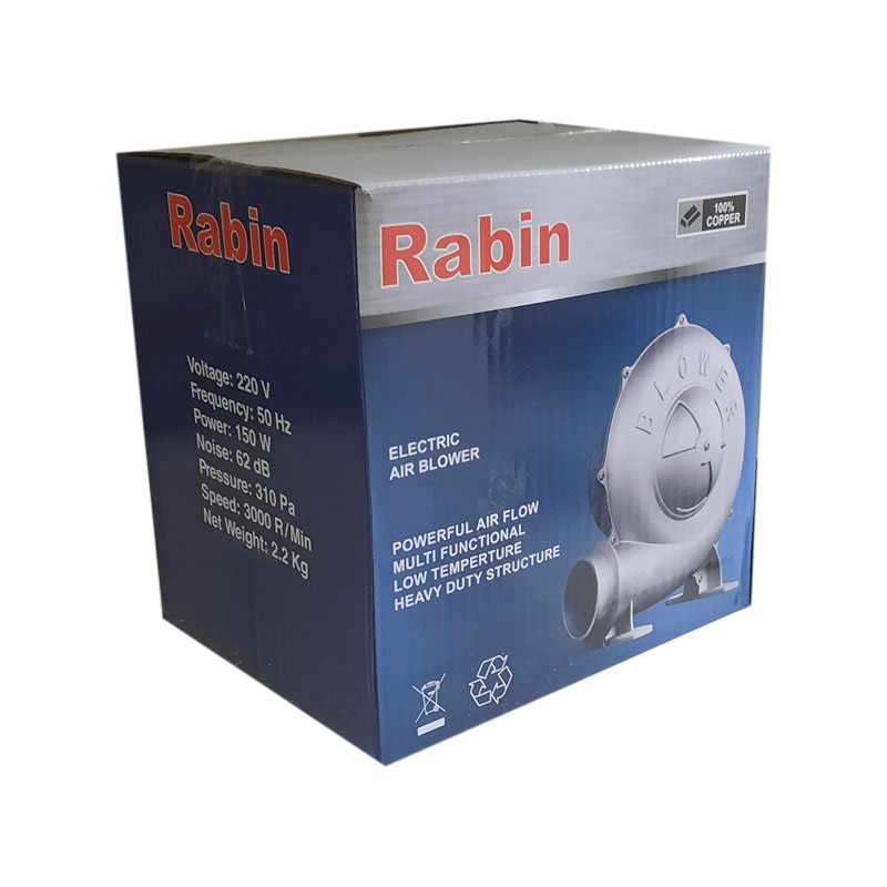 دمنده 2/5 اینچی توان مصرفی: 260 وات دارای کلید روشن و خاموش اتصال به برق شهری از طریق دوشاخه و دارای پوسته الومینیم میباشد ، دم برقی رابین یکی از پر فروش ترین دم برقی های بازار ایران میباشد