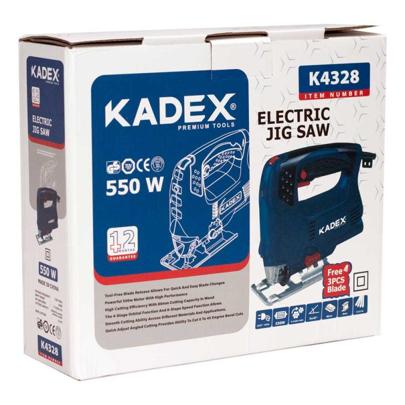 محصولی که مشاهده میکنید دارای موتور پر قدرت با توان 550 وات واقعی می باشد، همچنین این محصول مجهز به سیستم تیغ گیر اتوماتیک و بدون نیاز به آچار می باشد (TOOL FREE)، از ویژگی های دیگر آن قابلیت تنظیم سرعت برش در 6 حالت مختلف است(شش دور) و در تولید آن برای افزایش طول عمر دستگاه از یلیرنگ های ضد گرد و غبار استفاده شده است. عمود بر 550 وات کادکس مجهز به قفل کن کلید جهت استفاده مداوم و طولانی از دستگاه است و دارای کفی فلزی با قابلیت تنظیم بین 90 الی 45 درجه جهت برش زاویه دار است، این محصول دارای دسته ارگونومیک با روکش نرم جهت جلوگیری از تعرق و لیز خوردن دست در هنگام کار است و در نهایت عمود بر 550 وات کادکس به همراه آچار آلن، خط کش مدرج و 3 عدد تیغه برش با کیفیت به شما تقدیم میشود.
