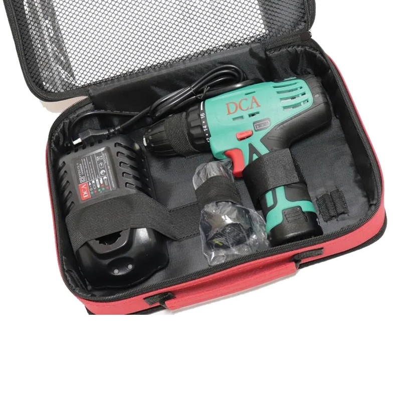 معرفی دریل پیچ گوشتی شارژی دی سی ای مدل ADJZ10-10 دریل پیچ گوشتی شارژی دی سی ای مدل ADJZ10-10 انرژی مورد نیاز خود را از طریق یک عدد باتری باطری 12 ولت 1.5 آمپر لیتیوم یون تامین می کند . دارای قابلیت تنظیم جهت گردش به صورت چپ گرد ، راست گرد و همچنین تغییر گشتاور و سرعت به وسیله شستی تعبیه شده بر روی بدنه می باشد . این دریل پیچ گوشتی قابلیت سوراخ کاری در چوب تا عمق 20 میلی متر و در فولاد تا عمق 10 میلی متر را دارد . این ابزار شارژی دارای یک عدد LED در زیر سه نظام می باشد که در حین کار در فضاهای تاریک بسیار مفید واقع میشود . تعویض ملزومات بدون نیاز به ابزار اضافی و همچنین دسته نرم با طراحی ارگونومیک از دیگر ویژگی های این محصول به شمار میرود . و سرعت در حال آزاد این دریل شارژی 0-400 دور در دقیقه, 0-1500 دور در دقیقه خواهد بود . دریل پیچ گوشتی شارژی دی سی ای مدل ADJZ10-10 دارای 18 ماه ضمانت شرکت صنعتی نگین نیز می باشد . این محصول به همراه یک شارژر, کیف حمل عرضه میشود .
