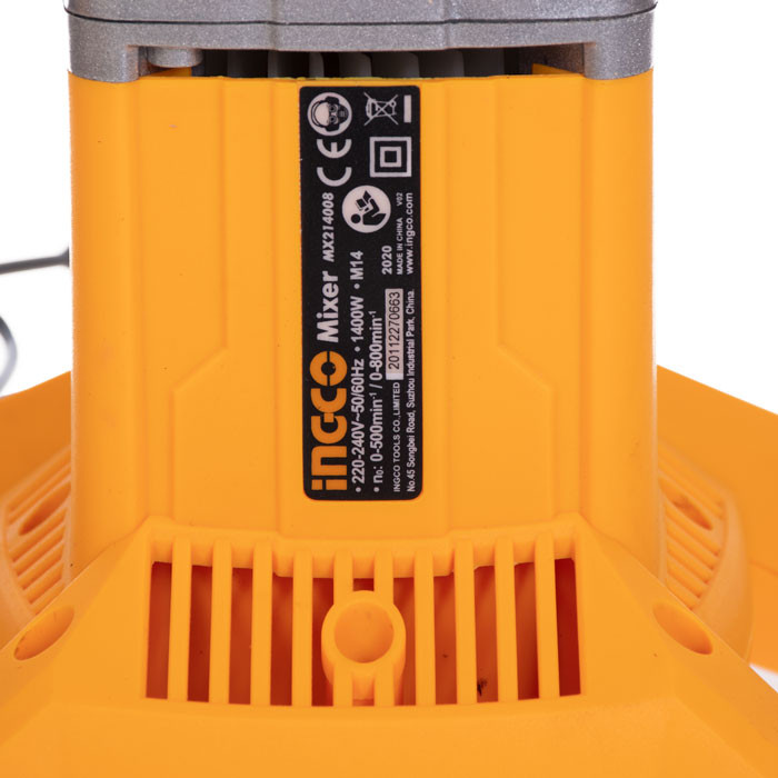 میکسر 1400 وات مدل MX214008 یک دریل همزن قدرتمند است که این دستگاه برای افزایش کارایی و تنوع کاربرد،دارای گیربکس دو سرعته شده است و سرعت گردش آن با یک دیمر کنترل سرعت 6 حالته به خوبی افزایش و کاهش می یابد. سرعت بی بار این دستگاه در دور اول موتور در محدودهی 0 تا 500 دور در دقیقه و در دور دوم موتور در محدودهی 0 تا 800 دور در دقیقه قرار دارد. این میکسر که به همراه سری و میله فولادی و دو عدد آچار ارائه شده است، دارای یک میله از فولاد ضد زنگ است. ابعاد این دستگاه بدون پره و میله برابر با 20×33×33 سانتیمتر و وزن خالص آن برابر با 3720 گرم است. این دستگاه که در بسته بندی خود همراه با دفترچه راهنما و کارت گارانتی عرضه شده است، توسط شرکت اینکو در کشور چین و تحت لیسانس کشور آمریکا تولید شده است و به بازار جهانی عرضه شده است.
